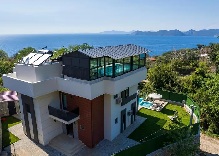 **Welcome to Holiday Villa With Sea View and Heated Pool Villa Mariposa** - an exquisite retreat nestled in the picturesque Fethiye region of Turkey. This splendid villa offers a unique blend of luxury and comfort, boasting breathtaking sea views that create a serene backdrop for relaxation. The outdoor space is complemented by a heated pool, inviting guests to unwind and soak up the warm Mediterranean sun.